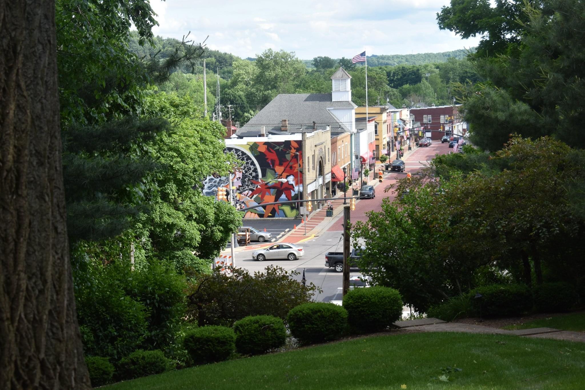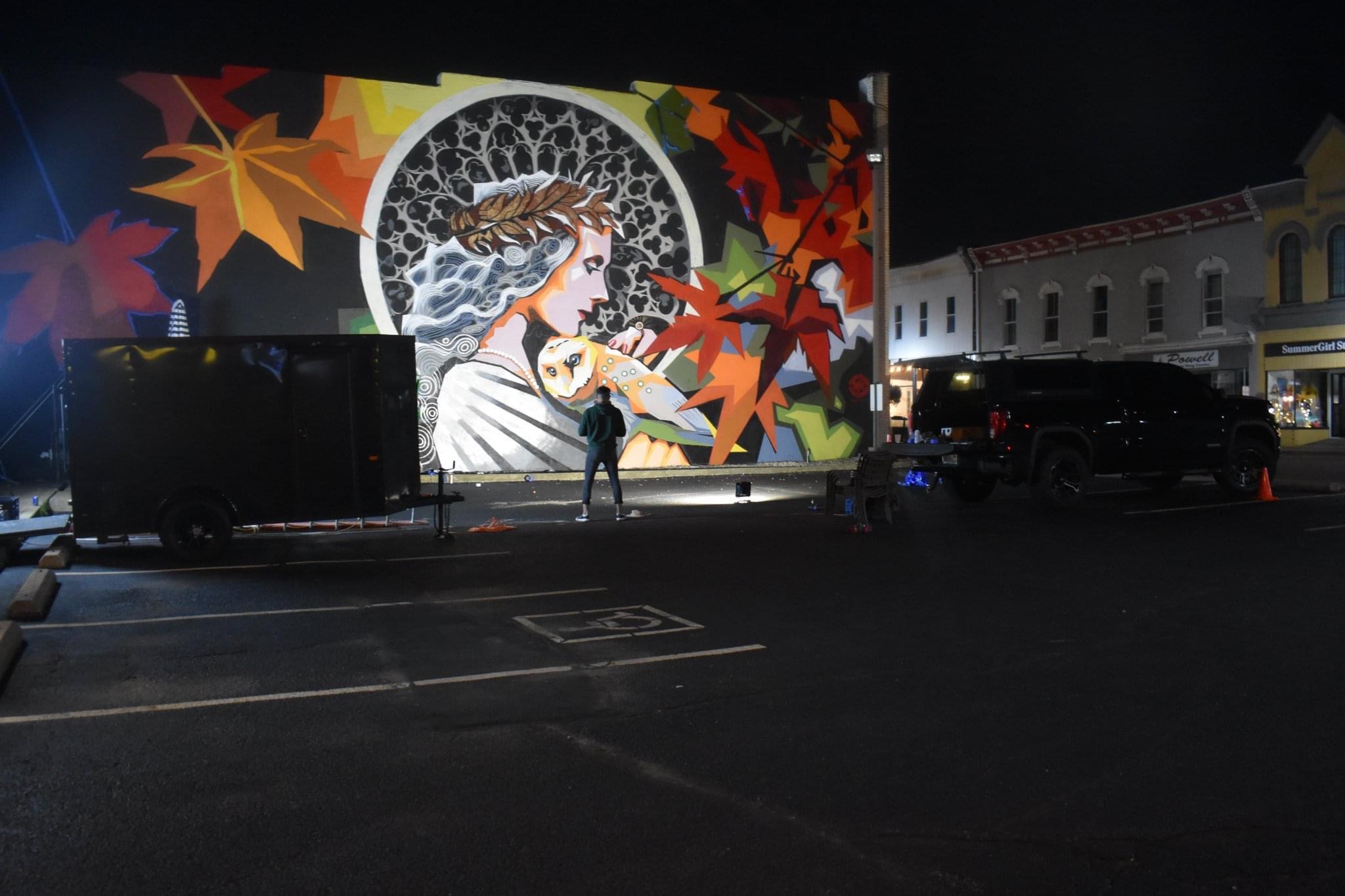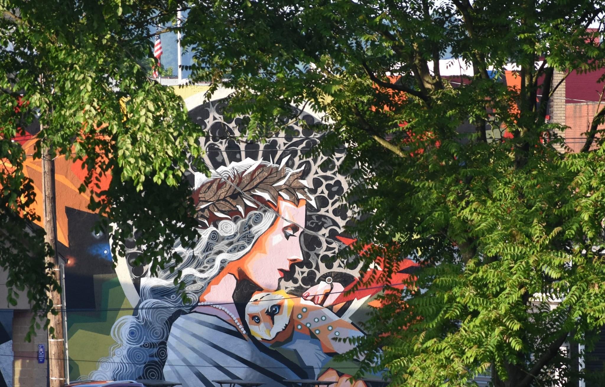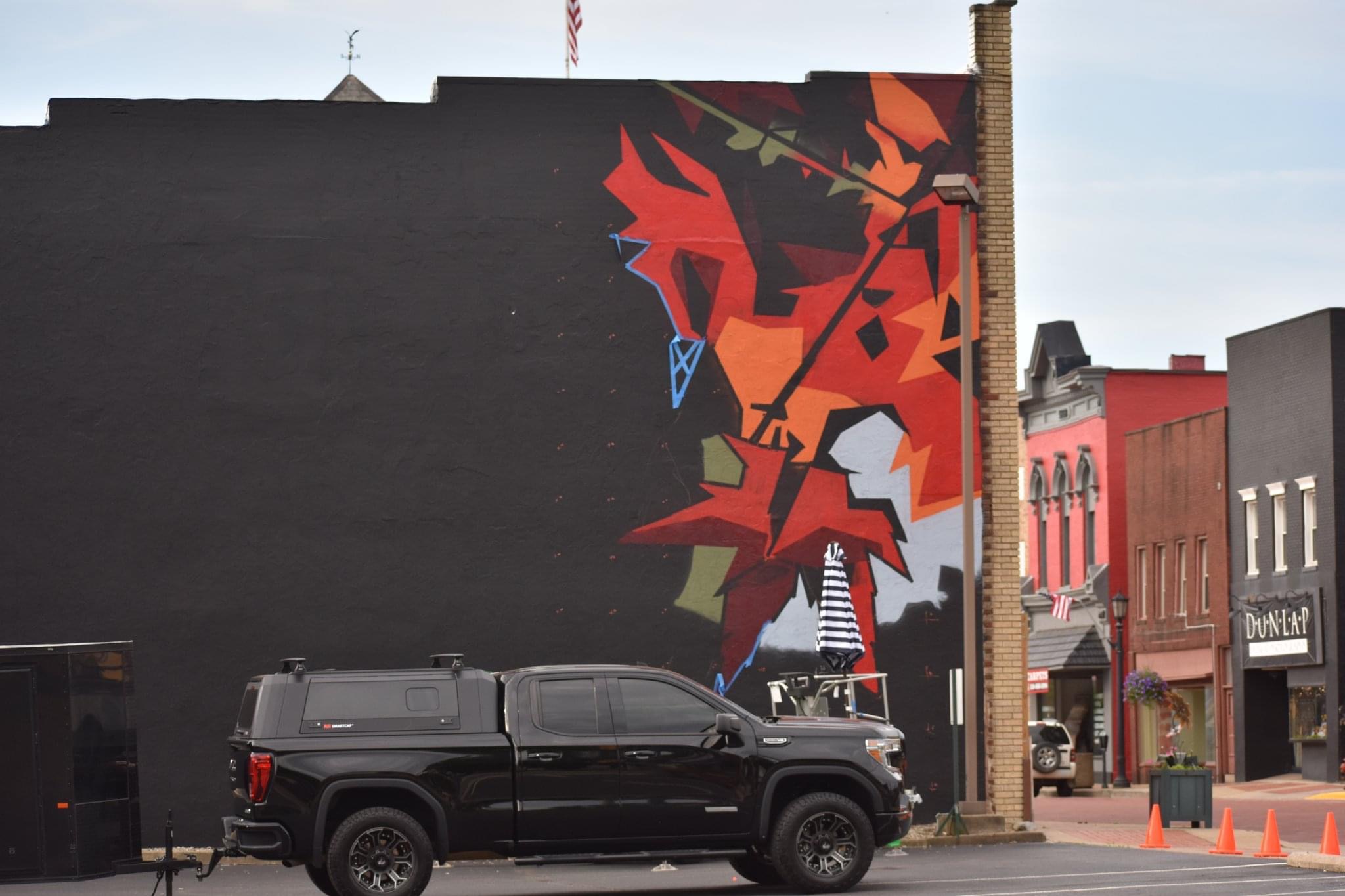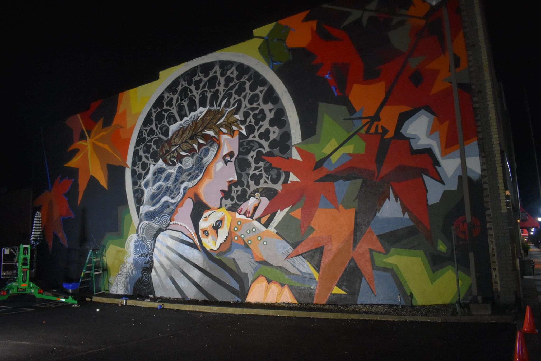 Created by professional artist and Minerva Native Matt Kress, this mural is located at the entrance to the village’s historic downtown and pays tribute to the village’s namesake through powerful imagery inspired by Roman mythology. Sponsored by Minerva Arts Council, Visit Canton, and the Village of Minerva and with cooperation of building owners Cherrie and Tim Matthews, the artwork features the goddess Minerva -symbol of wisdom and war- alongside her iconic owl companion. While the village was actually named after Minerva Ann Taylor, not the Roman deity, the mural embraces the mythical connection in a bold and timeless way.